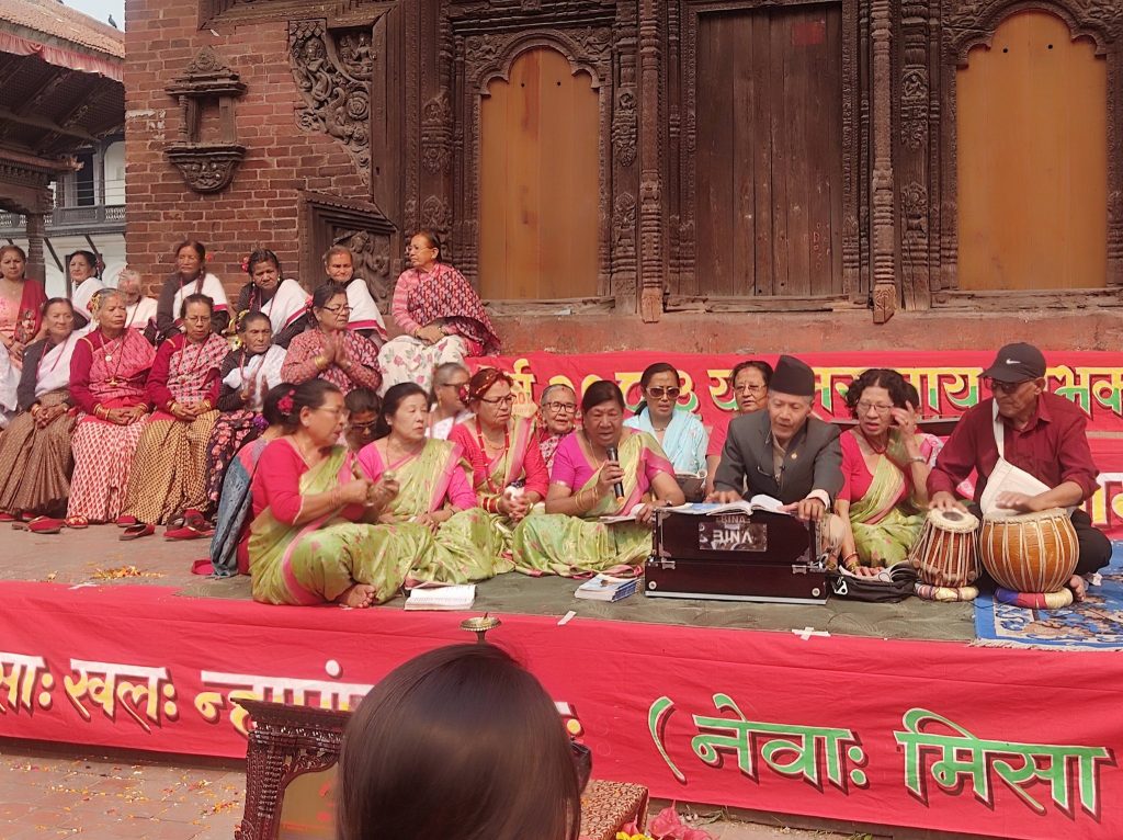 न्हापांगु पलाः नेवाः मिसा पुचःको आयोजनामा काठमाडौंको हनुमानढोकामा भजन, सांस्कृतिक तथा सम्मान कार्यक्रम भव्य रूपमा सम्पन्न भएको छ । कार्यक्रममा ७० देखि ८० वर्ष उमेर समूहका जेष्ठ नागरिकहरूले भजन–कीर्तन, परम्परागत नृत्य तथा सांस्कृतिक प्रस्तुति दिएका थिए । कार्यक्रममा नेवार समुदायका बाजे–बज्यैले प्रयोग गर्ने मौलिक पोशाकमा जीवनशैली झल्काउने नृत्य, गीत तथा भजन प्रस्तुत गरिएको थियो । बिहानको नित्यकर्म, दिउँसोको खेतीकिसानी र साँझ भोजमा जाने क्रममा लगाइने पोशाक समेत प्रस्तुत गर्दै विभिन्न रैथाने गीतमा नृत्य गरिएको थियो ।