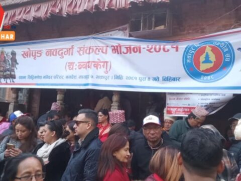 नगदेशमा ख्वप्रीङ नवदुर्गा संकल्प भोजन आयोजनामध्यपुर, पुस ४ गतेभक्तपुर सहयोग विकास समितिले मध्यपुर थिमीको नगदेशमा ख्वप्रीङ नवदुर्गा संकल्प भोजन गराएको छ । भक्तपुरको जीवन्त देवदेवीको…