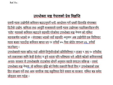 एलपी ग्यासमा कमिसन बढाएको प्रति उपभोक्त मञ्चले जनाए अपत्ति