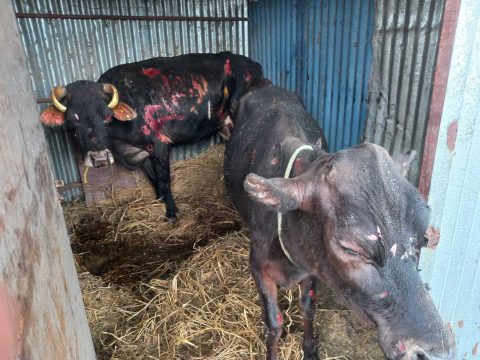 लक्ष्मी गाई फार्ममा आगलागी हुँदा ४ गाई मरे, ५ घाईते